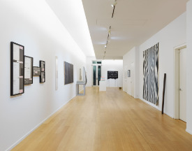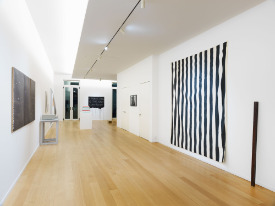 - Peinture acrylique blanche sur tissu rayé blanc et noir, Octobre, 1971,