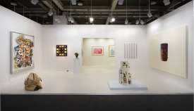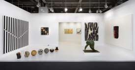 - Peinture acrylique blanche sur tissu rayé blanc et bleu, Décembre, 1969,