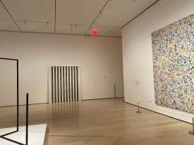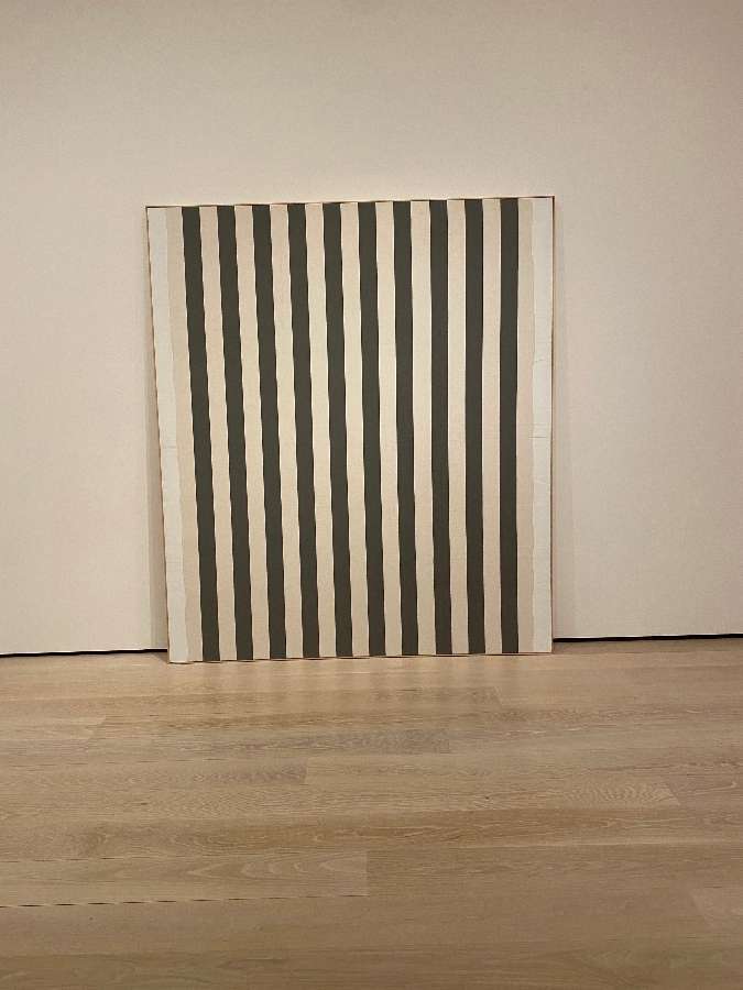 - Peinture acrylique blanche sur tissu rayé blanc et gris, [Octobre], 1966,