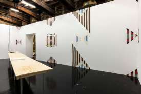 - Intervention de Krasinski sur Peinture acrylique blanche sur tissu rayé blanc et rouge, 1970 / Octobre, 2004,