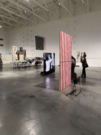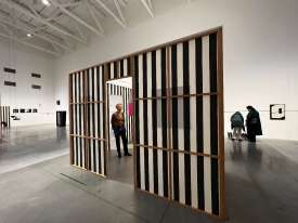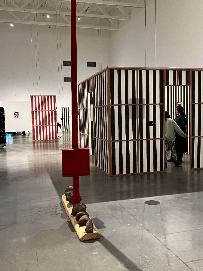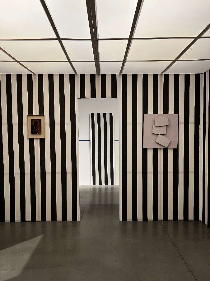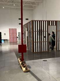 - Intervention de Krasinski sur Peinture acrylique blanche sur tissu rayé blanc et rouge, 1970 / Octobre, 2004,