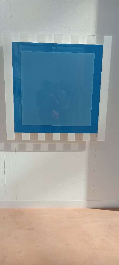 - Élément carré bleu sous plexi n° 6, Septembre, 2005, Travail situé
