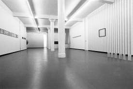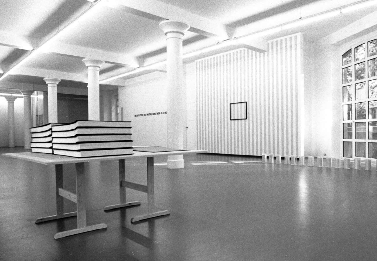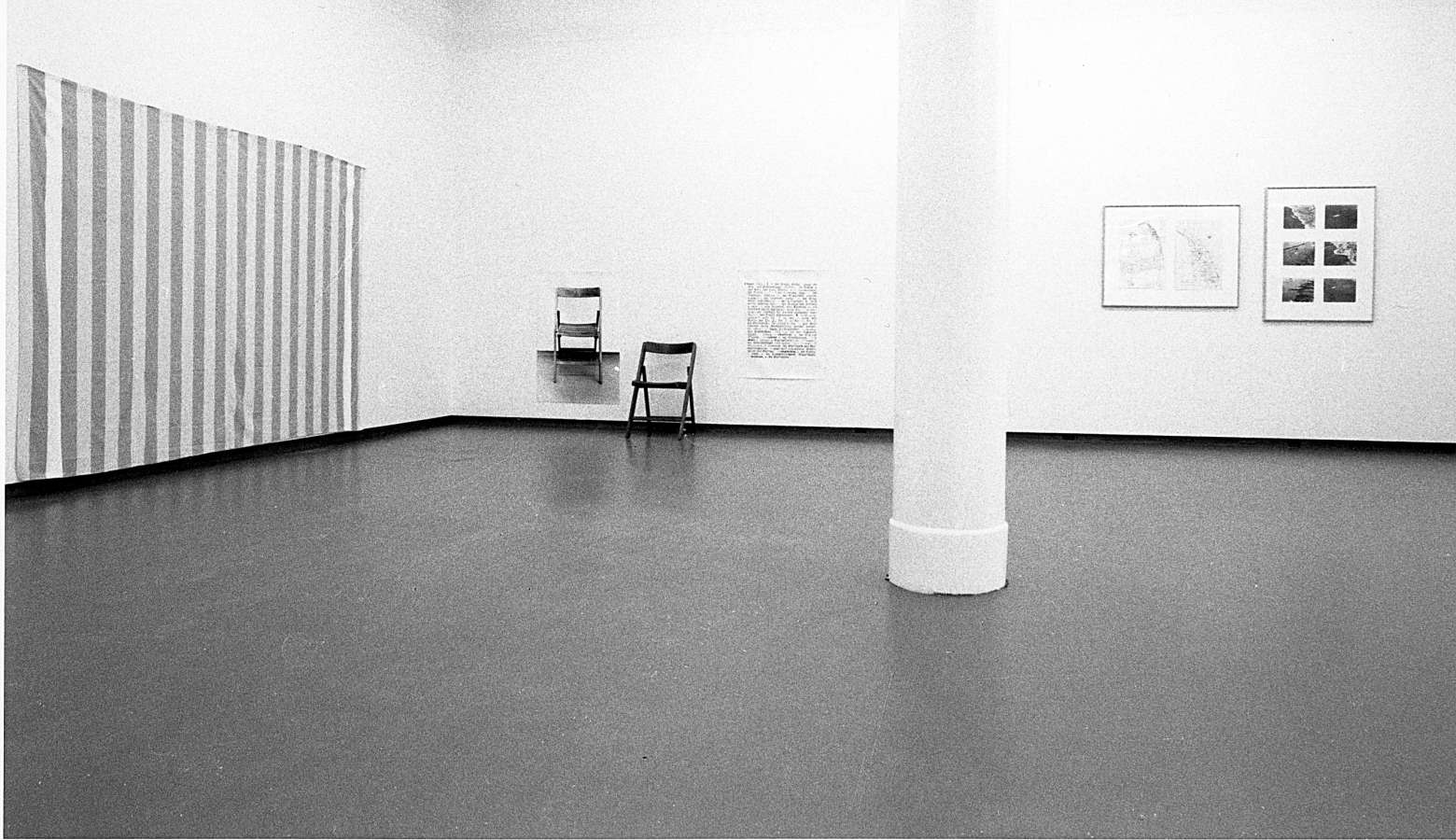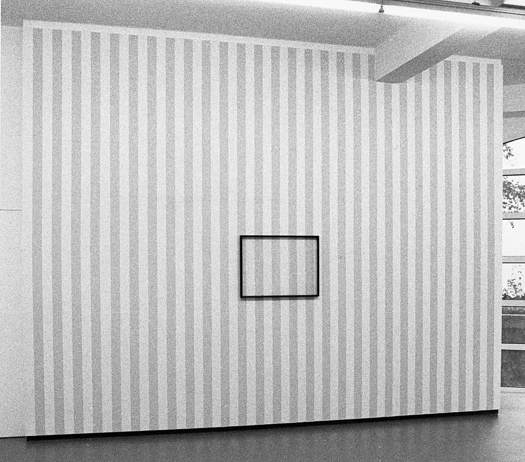 - Peinture acrylique blanche sur tissu rayé blanc et gris clair, Mars, 1970,