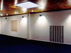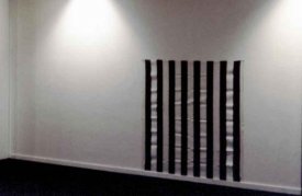 - Peinture acrylique blanche sur tissu rayé blanc et noir, Mai, 1971,