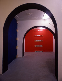 - Papier blanc et noir sous-verre encadré sur mur rouge, 14/10/1987, 1987, Travail situé