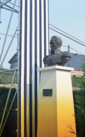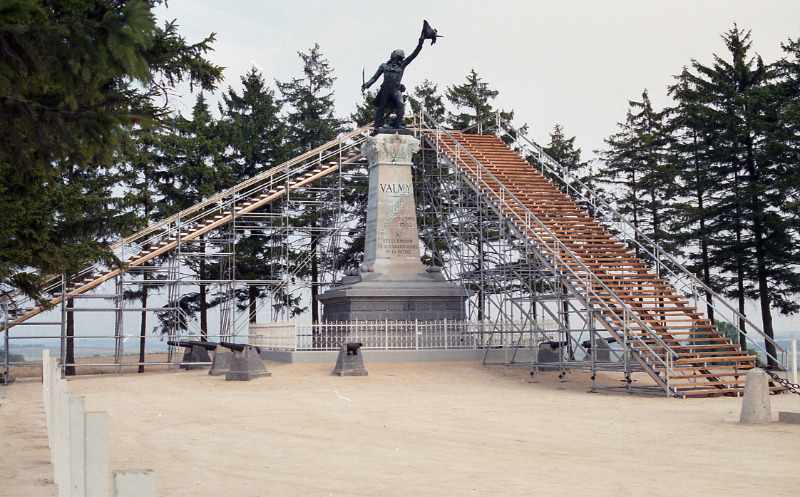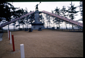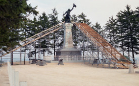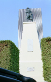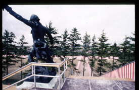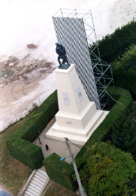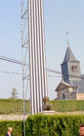 - [Sans titre - Panneau derrière statue], Septembre, 1989, Travail in situ