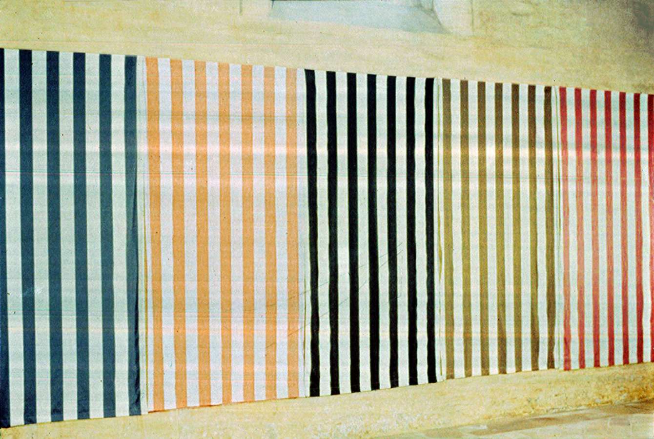 - Cinq peintures sur toile constituant une seule pièce, Juin, 1973, Travail situé