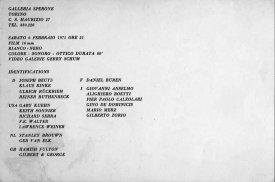 "Identifications, Film 16 mm, Bianco - Nero, Colore - Sonoro - Ottico, Durata 60' ", produit par Videogalerie Schum, Düsseldorf