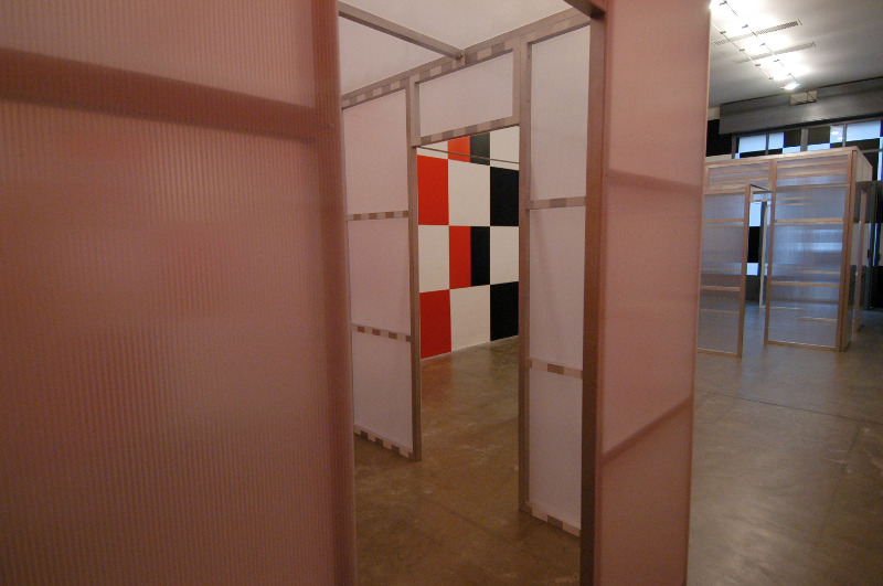 - Cabane aux polycarbonates translucides pour PVC rouges, Novembre, 2003, Travail situé